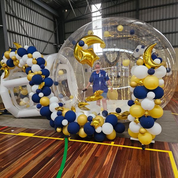 Fully enclosed 4m x 4m complete with slide basketball ring and bop bags.
